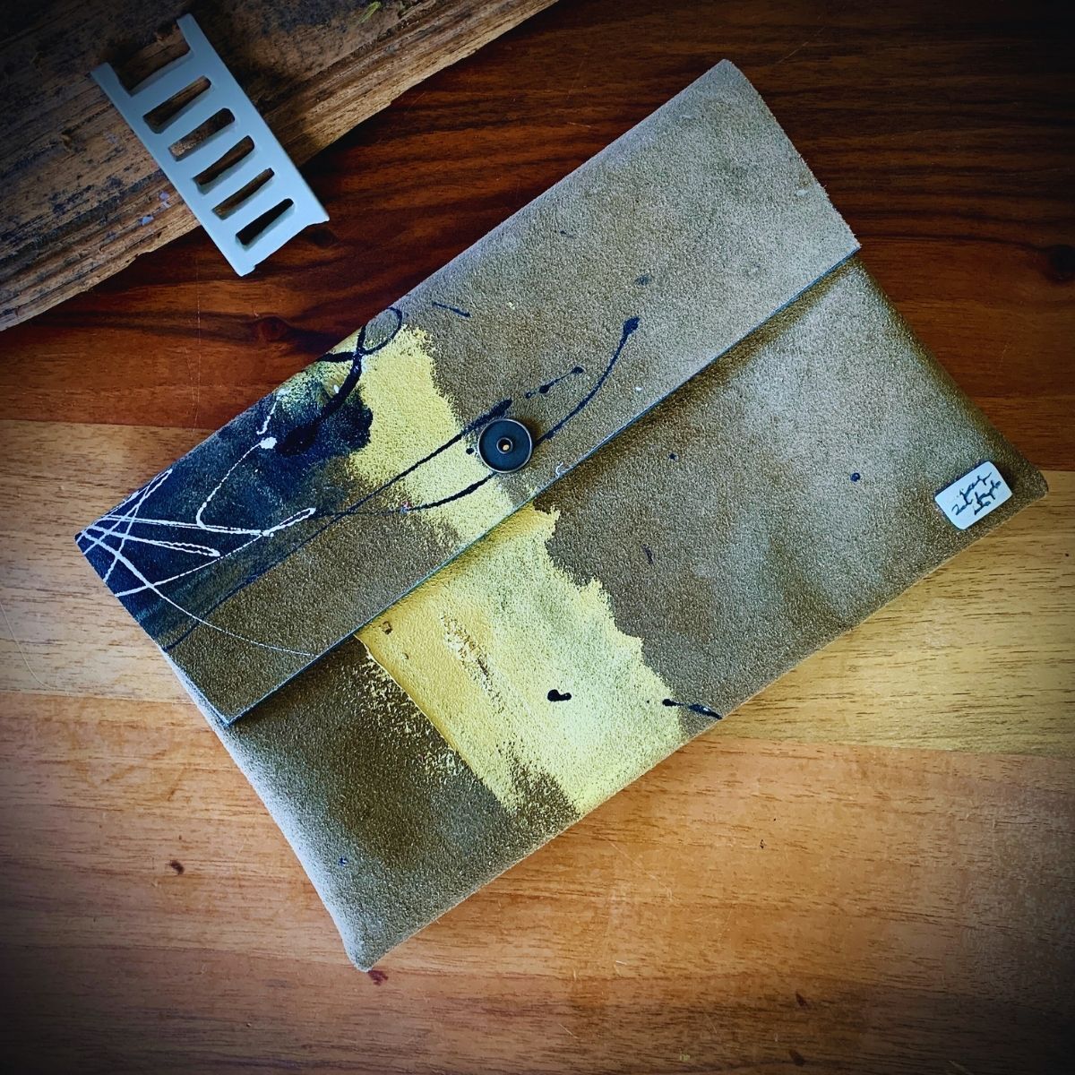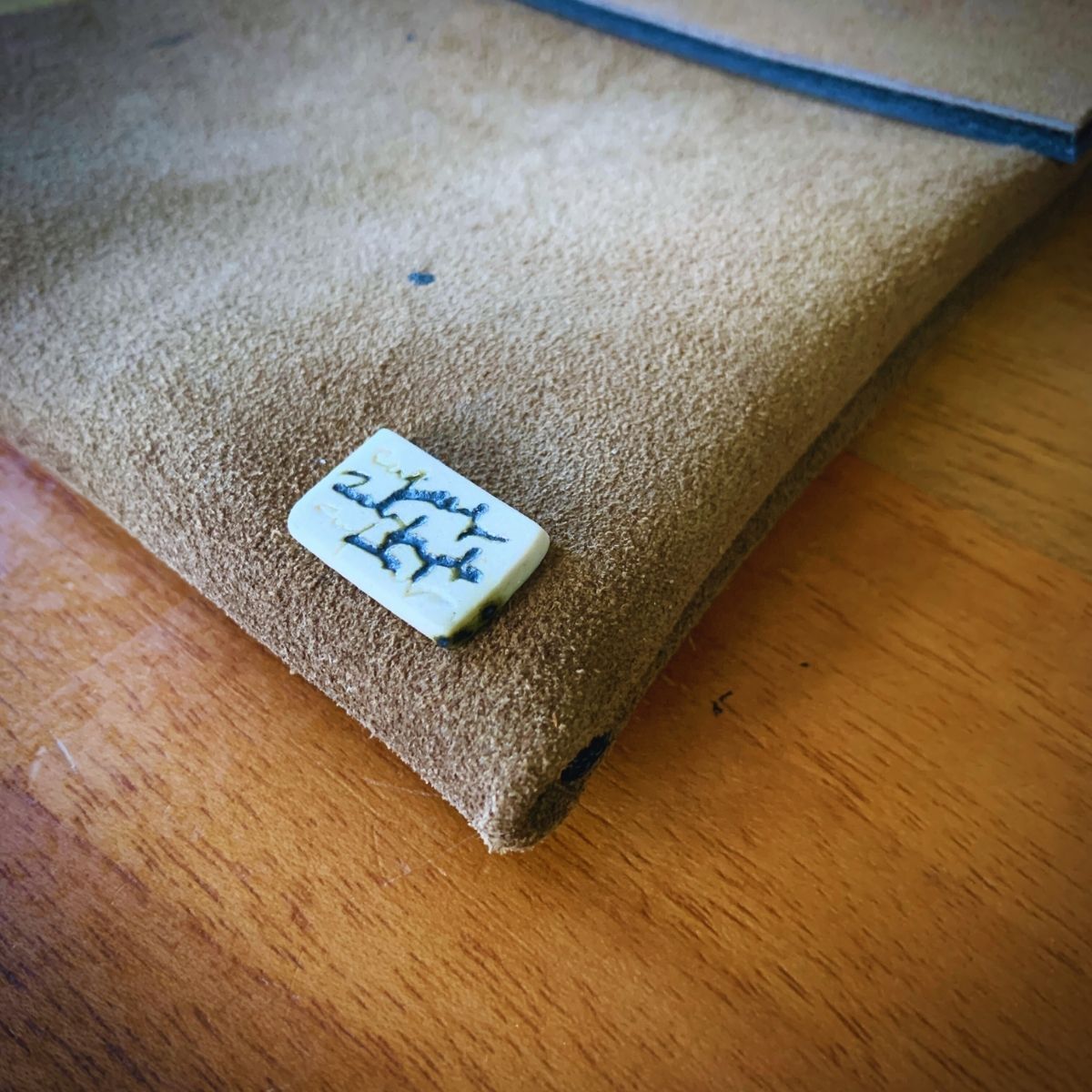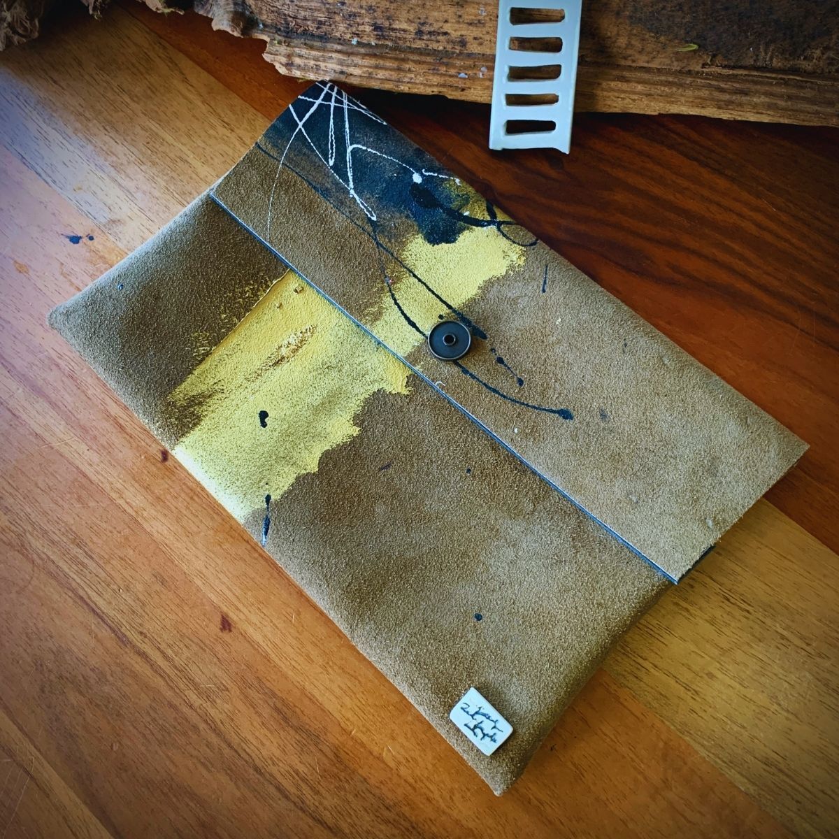 Malzeme: Hakiki deri-Kahve köpüğü renk, üzeri altın rengi siyah ve beyaz boya ile boyanmıştır